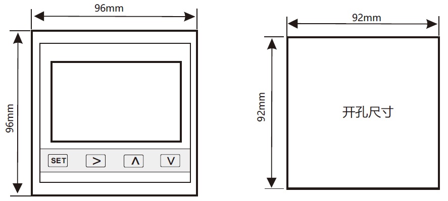(10)外形尺寸: 96×96×136.5mm (開孔尺寸92×92mm)。